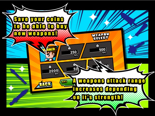 Use the coins you've earned to unlock even stronger weapons.