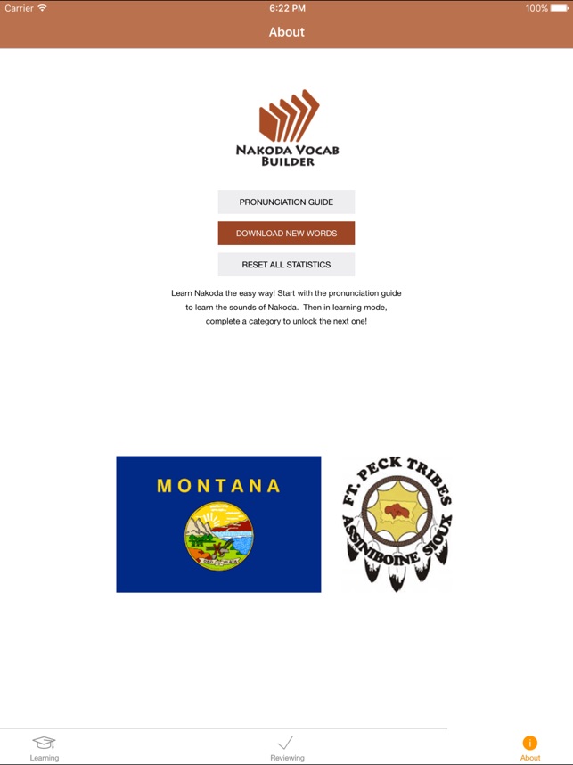 Build your Nakoda vocabulary with the Fort Peck Language and Culture Department’s FREE vocabulary game for your phone or iPad. Quiz yourself every day to learn different categories – wild animals, food, drinks, and more! The app includes:
