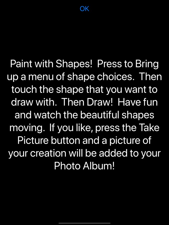 This great little app lets you paint with shapes! Paint with a bundle of balloons, with fireworks, with a cake, with spirograph(tm) shapes!