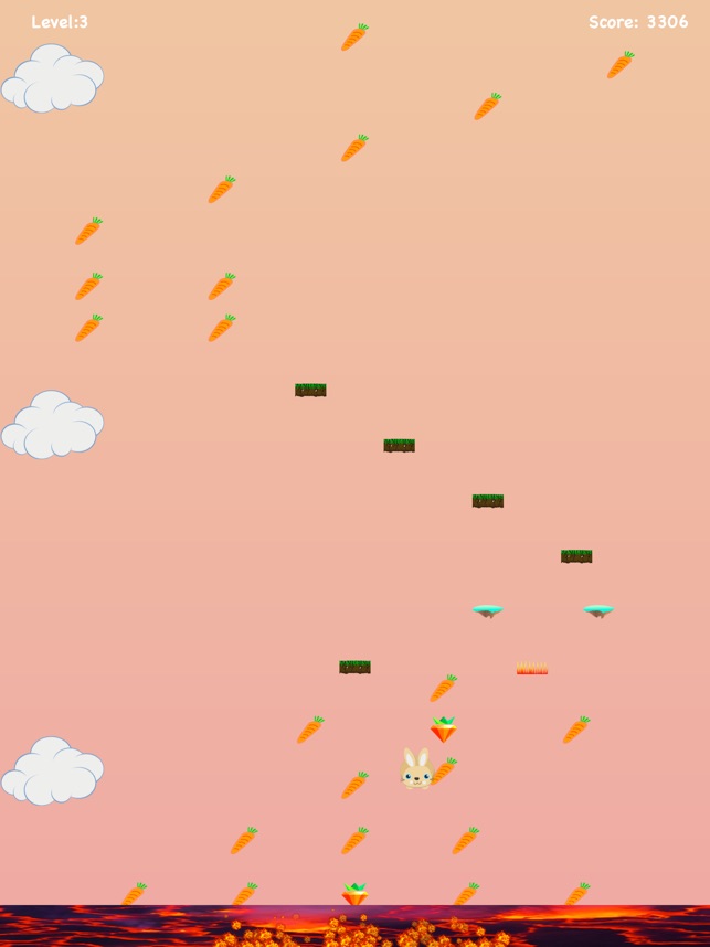 蹦蹦兔跳跃是一款简单有趣的iOS手机应用游戏.左右倾斜手机/平板电脑可以控制蹦蹦兔水平移动方向。收集萝卜可以得到向上的助推力来逃离岩浆地面,开始下载玩吧!