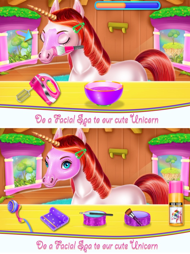 First, you need to make sure you get rid of that unpleasant condition where he is put in. Start the treatment phase and use the equipment you dispose of. Remove the foreign objects and clean the spot. Put on the substance that will cicatrize the area and let the healing part continue. Make sure the hoofs are all cleaned up and shiny. You should focus on the part where you wash the ridge and arrange his hair. Apply the shampoo, rub it well and cut the hair that seems to stay rebel and messy. Accomplish the spa challenges and keep going on with all the things that need to be done in order to please this little colorful pony. Now you have to take care of the dressing part where you add colorful pieces of clothing and interesting accessories to make him look even more full of life. Put on colorful accessories, add a nice outfit maybe you could even try to combine the look with your personal style. If you've finished this part from this animal game you could make the unicorn very happy, but only if you followed the instructions and do it in the right order. You can have a lot of fun if you know how to handle this situation, be responsible and also try to learn the importance of a proper care. Don't miss the fun and enjoy each part of this animal game.