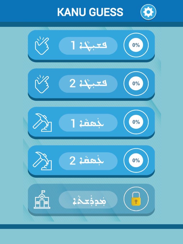 The game has multiple Syriac language skill levels. It starts with 1 picture 1 word, and then ends with 4 pictures 1 word. The picture(s) will show, and you will get a list of random letters to pick the right combination of letters to construct the word that is depicted in the picture(s). :)