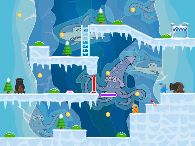 双猫战士这次要到南极洲寻找古老的金币,途中将经历重重的困难,为来消灭力量强大的恶魔,他们必须要在这个冰冷的世界里通过互相配合和帮助收集完全部的金币。
