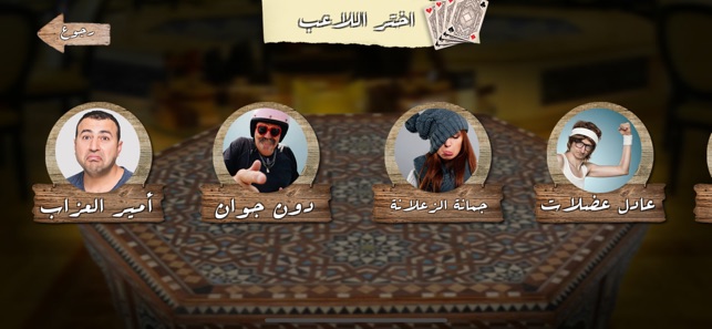 تستطيع اختيار شخصية من بين عدة شخصيات مضحكة (فتحي الصحي، وائل المتفائل، سعيد فوتوغرافي، سلوى مشاكل، أمير العزاب، دون جوان، جمانة الزعلانة، عادل عضلات، أبو شنب، إيهاب النّصاب)
