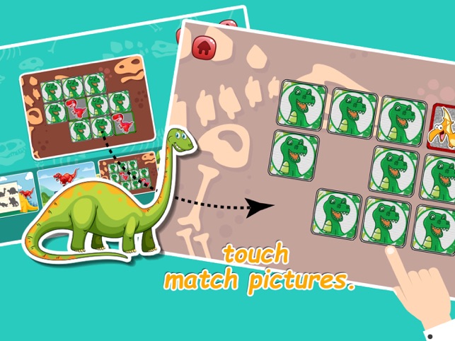 - 触摸屏幕并将恐龙拖动到正确的阴影上。当拼图完成时,点击下一级按钮