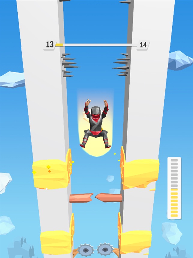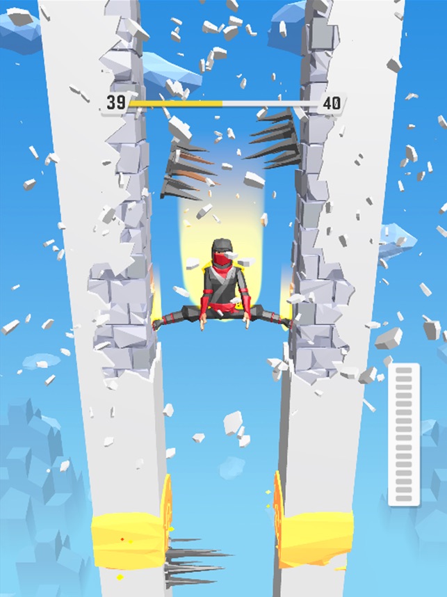 从墙上跳下来,点击摧毁道路上的墙和障碍物,最后到达终点。