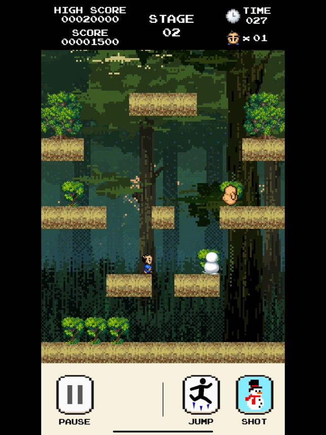 This is a 2D action game. Rule is very simple. Player defeat all enemies every stage afterwards is finished this stage. Every stage has limitation of time. And player has life points(its means survivor). The life point decrease if player collide with an enemy. The game finish condition is which if player collide with an enemy or zero of time. Player throws a snowball towards the enemies and if its snowball hit in the enemies, then the enemies change to snowman. Player collide with the enemies available to defeat them when the enemies are snowman.