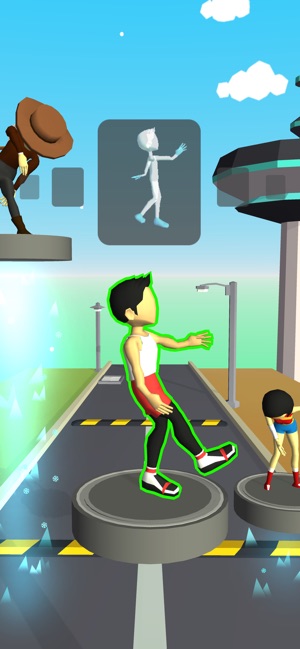 跟着音乐的节奏,在舞蹈进行到某些姿势的时候点击屏幕即可!根据跳舞的表现评级,表现越好,升高越快,争取第一个到达终点哦!