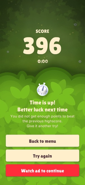 Zen Match is absolutely free to play, however it requires the user to log in (with Facebook or SignIn with Apple) and have internet connection in order to participate in the leaderboard. The option to continue a game is also present if the user decides to watch a short advertisement after running out of time.