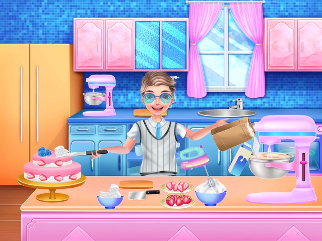 3.厨房制作草莓蛋糕,防止另外一个过来故意捣乱