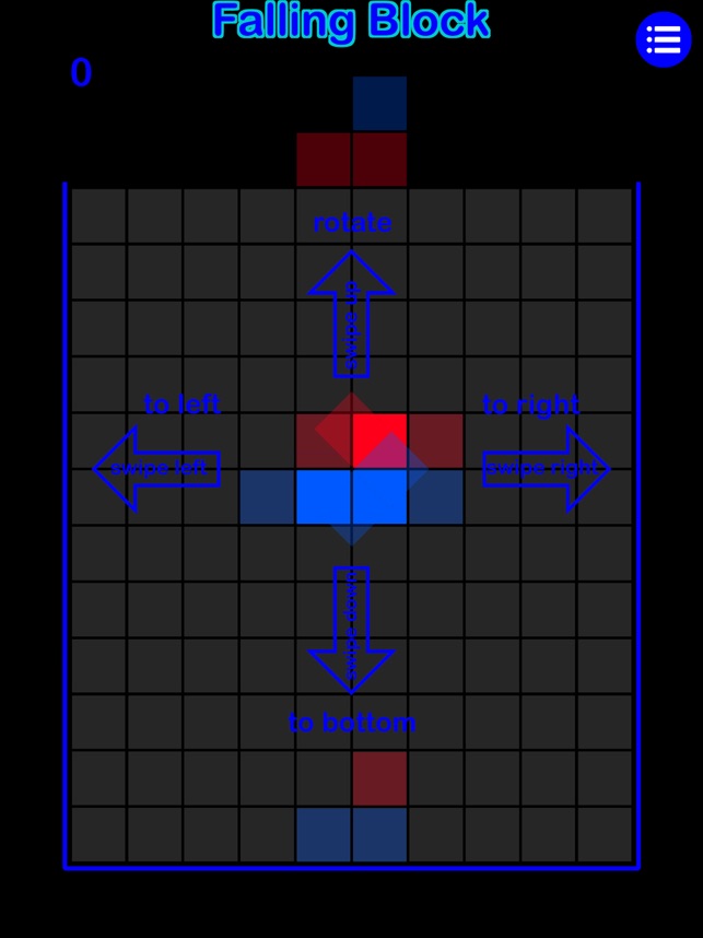 Use swipe up to rotate, swipe down to move down to the bottom, swipe left to move left and swipe right to move right.