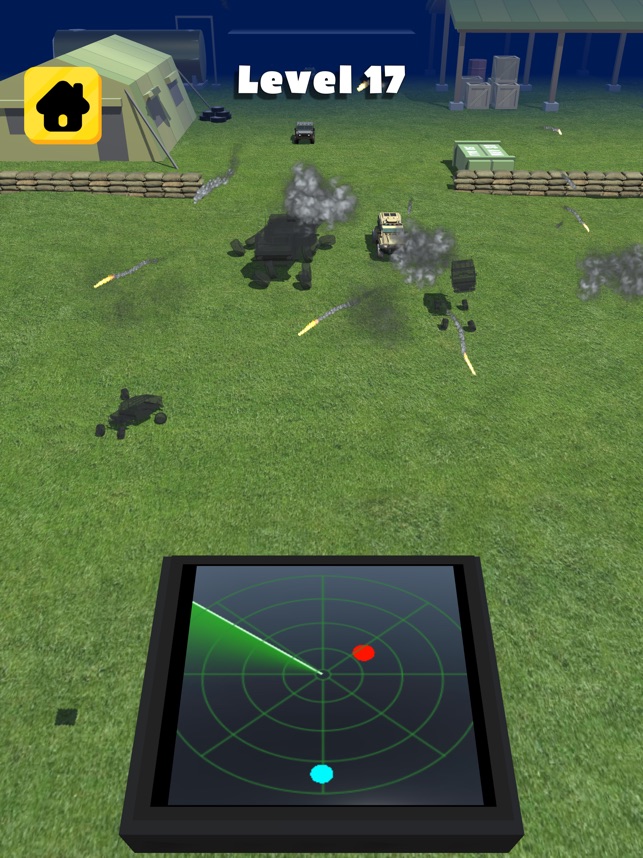 Explode all enemy vechiles using the radar. Don't let anyone pass. Be careful there are many friends on the battlefield!