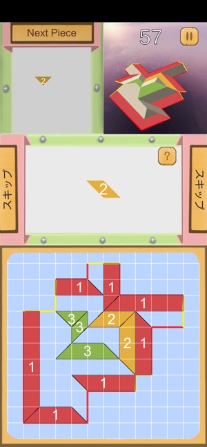 ワイプ」で回転させ「ダブルタップ」で位置を確定して制限時間内に屋根パズルを完成させま