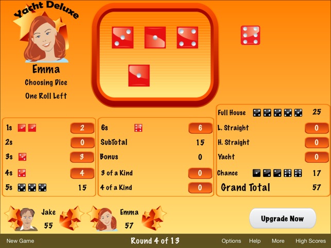 Yacht HD is a new dice game designed exclusively for your iPad. Players take turn rolling five dice to score big with a straight, full house, four of a kind, Yacht, or Chance combination. You may also know this game as Cheerio, Yot, Yam, Yahtzee™, or General.