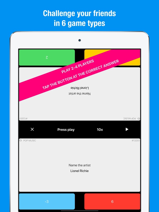 Play the 90s Music Quiz against yourself, start the party or challenge friends and family to a quiz game. Six different game modes and hours of entertainment and knowledge is simply waiting for you..