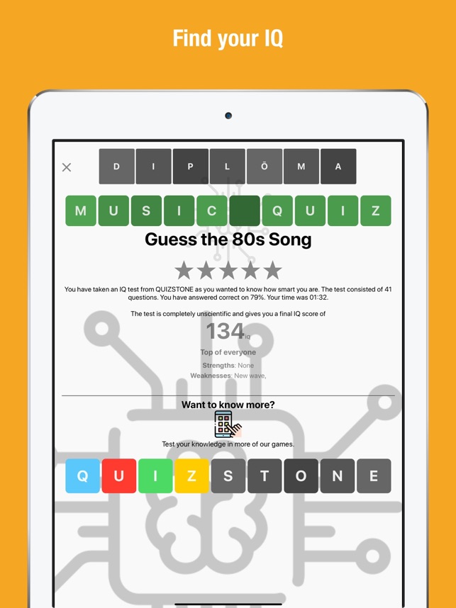Play QuizStone® against yourself, start the party or challenge friends and family to a quiz match. Six different game modes, lots of great questions and hours of entertainment and knowledge is simply waiting for you..