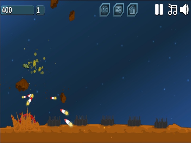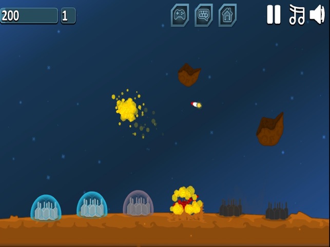 通过点击屏幕向陨石发出导弹摧毁掉你所看到的陨石,保护地面上的基地不受到任何伤害。