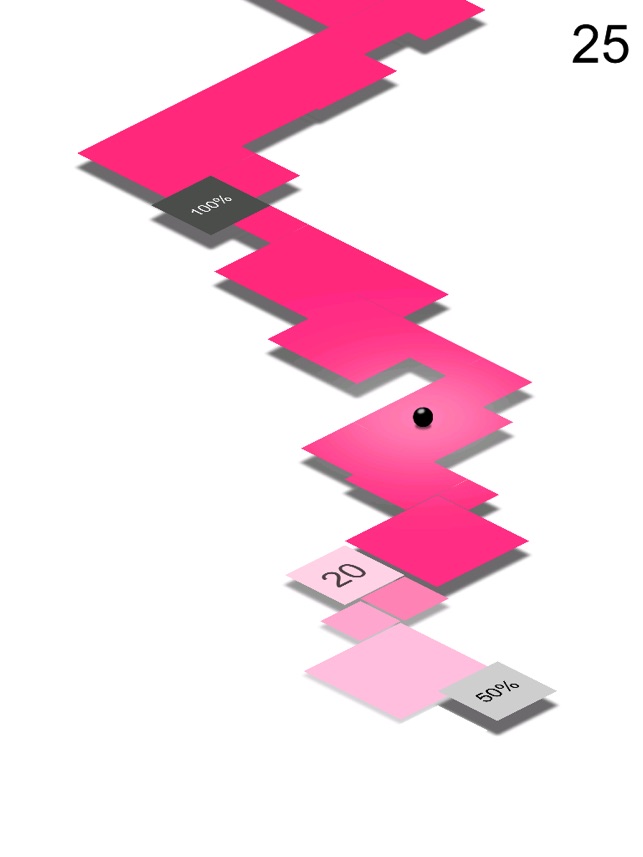 玩法非常简单,轻点屏幕改变小球的方向。尽量保持在赛道里前进,一旦落出去就输了。那些大大小小的方块可不那么好对付,看你能打几分。